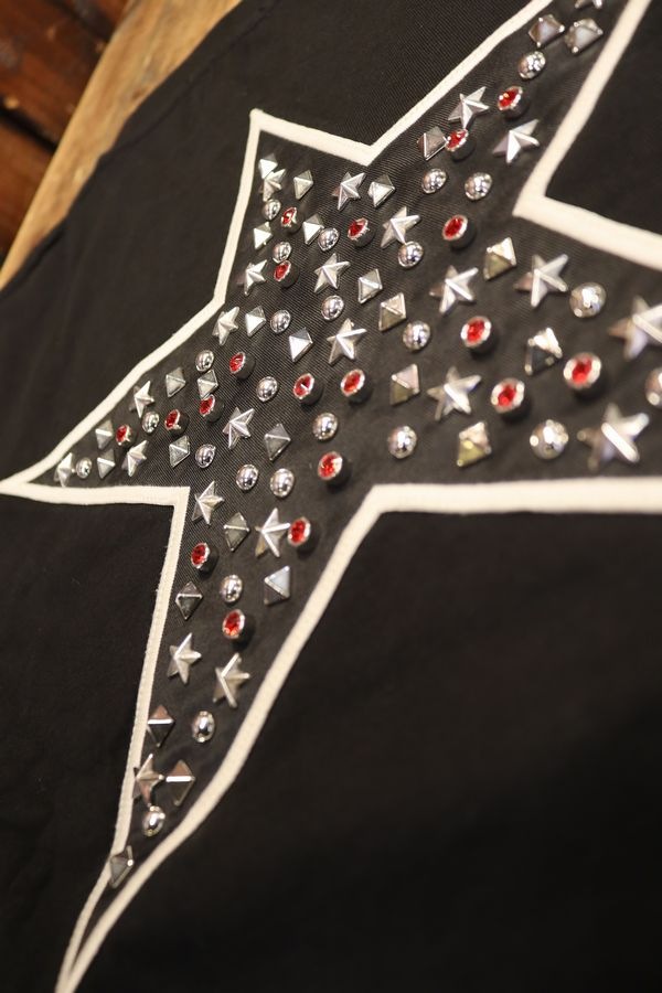 VANSON NVST-2515 天竺半袖Tee スタッズ刺繍 プレミアムライン Tシャツ ワンスター ブラック