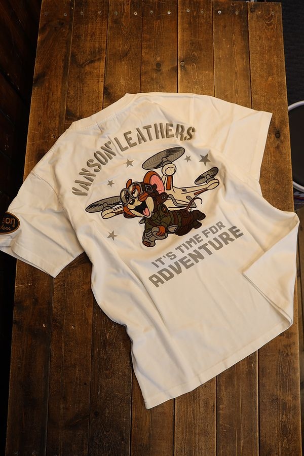 VANSON×Tom and Jerry トムとジェリーコラボ TJV-2517 天竺半袖Tee ドローン柄 オフホワイト