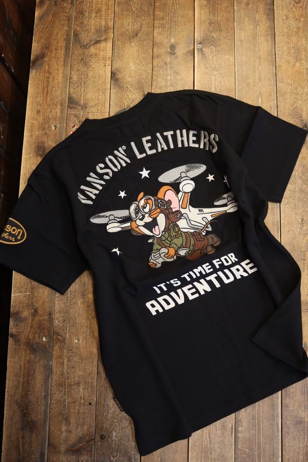 VANSON×Tom and Jerry トムとジェリーコラボ TJV-2511 天竺半袖Tee バイク刺繍 ブラック