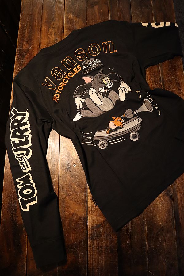 VANSON×Tom and Jerry トムとジェリーコラボ TJV-2403 天竺ロンTee 長袖Tシャツ ブラック