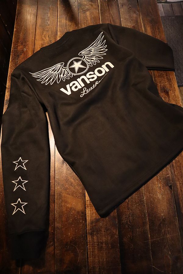 VANSON バンソン NVLT-2216 起毛プレーティングC/Nプルオーバー ウイング ブラック