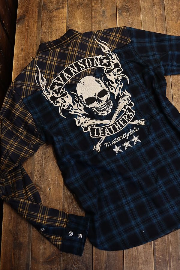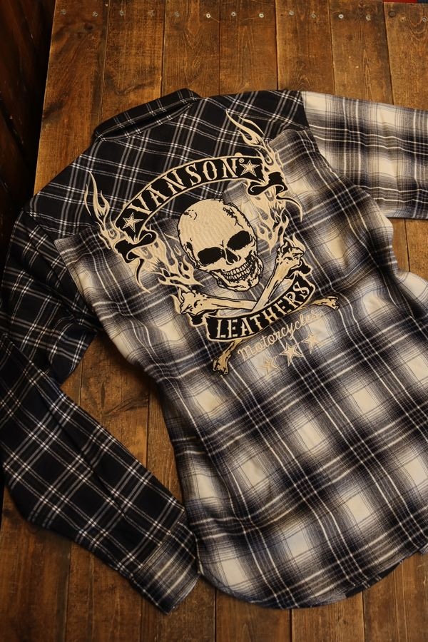 VANSON(バンソン) NVSL-2402 マルチカラーチェックシャツ スカル 刺繍 マルチA