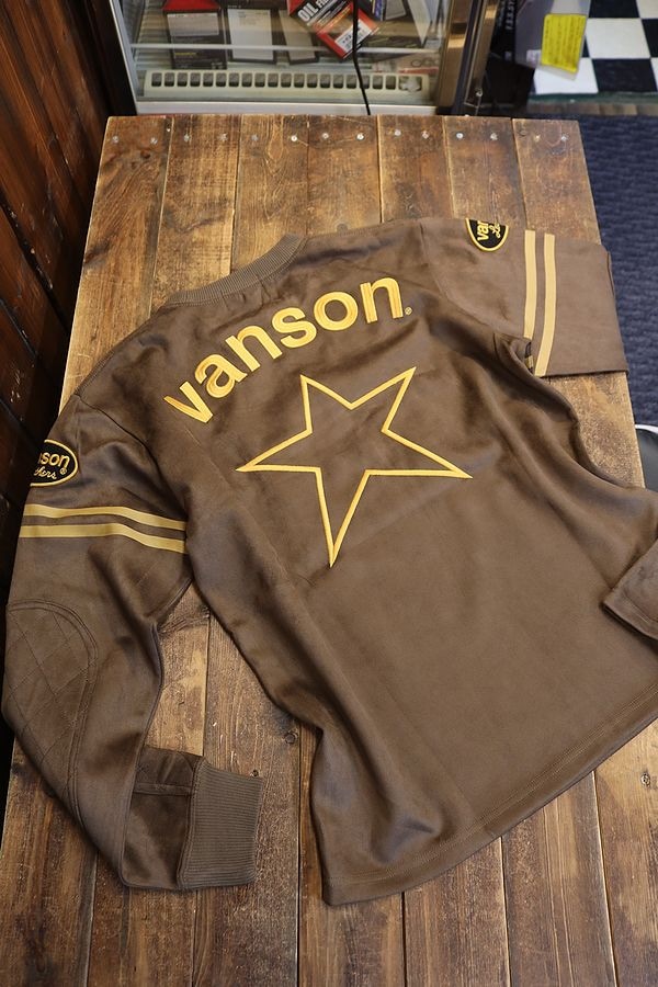 VANSON(バンソン) NVSL-2304 起毛ボンディングL/Sシャツ 刺繍 ウイング スター フェイクスウェード サンドベー...