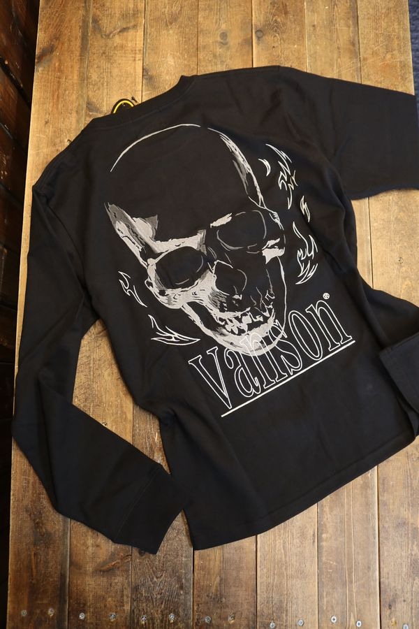 VANSON バンソン NVLT-2512 天竺ロンTee スカル刺繍長袖Tシャツ ブラックA