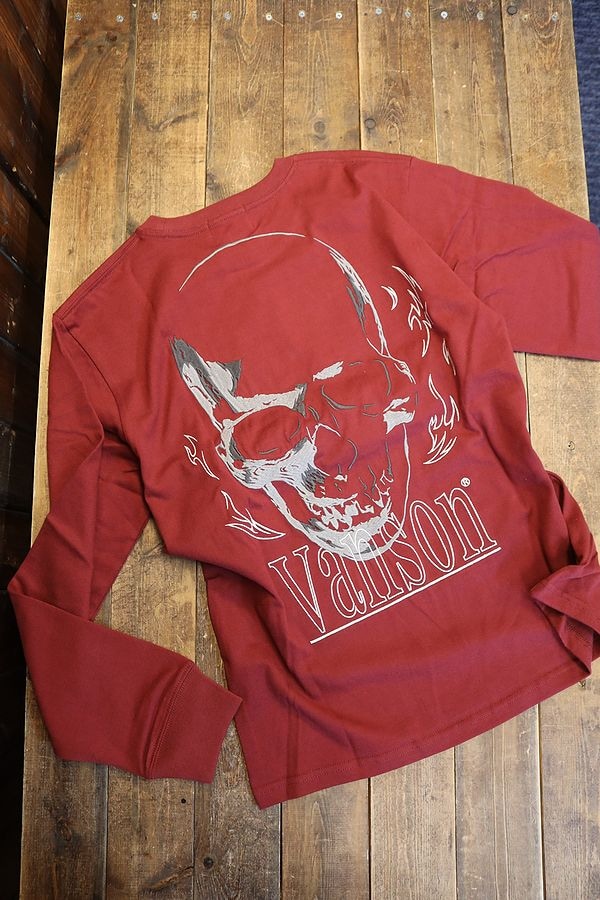 VANSON バンソン NVLT-2514 天竺ロンTee スカル刺繍長袖Tシャツ ワイン