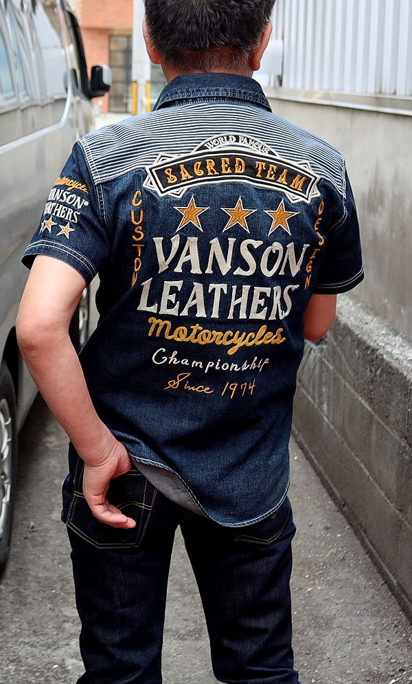 VANSON バンソン NVSS-2501 デニム 刺繍半袖シャツ スリースター ユーズドインディゴ