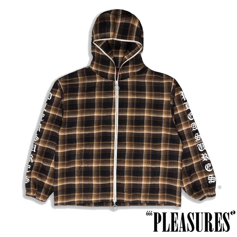 【PLEASURES/プレジャーズ】GROOVE ZIP PONCHO HOODIE パーカー / BROWN PLAID