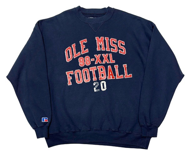 80\'s RUSSELL PRO ラッセルプロ リバースタイプ クルースウェット パッチプリント デカタグ NAVY size ...