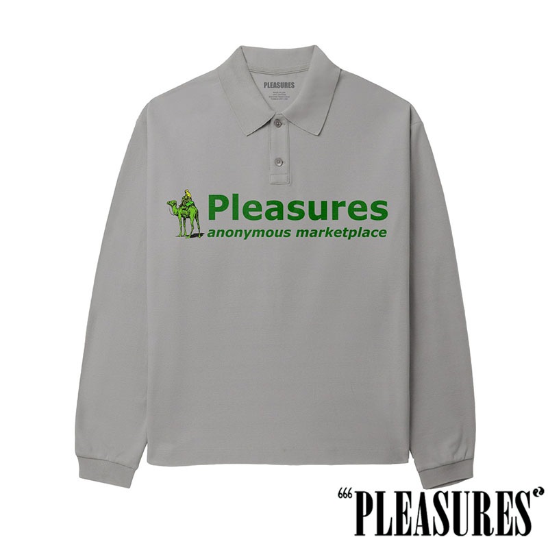 【PLEASURES/プレジャーズ】EXCHANGE POLO LONG SLEEVE ポロシャツ / GREY