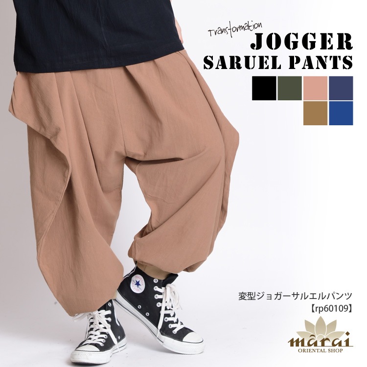 魔法の変型シルエット。変型ジョガーサルエルパンツ ロングパンツ ロング丈パンツ ロング丈 ロング イージーパンツ イージーワイドパ...