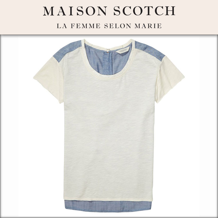 メゾンスコッチ MAISON SCOTCH 正規販売店 レディース 半袖Tシャツ T-SHIRT WITH WOVEN BACK ...