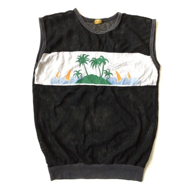 TRADE WINDS ノースリーブ メッシュカットソー アメリカ直輸入 送料無料 レディース S/黒・ブラック ヤシの木 ヨット...