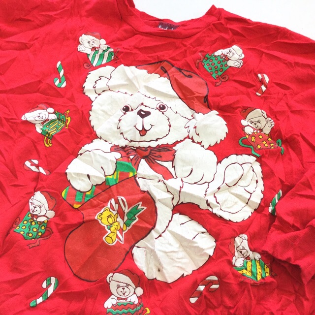 アメリカ古着 クリスマス しろくまスウェット トレーナー 送料無料 レディース M/赤・レッド プレゼント サンタ キャンディ X...