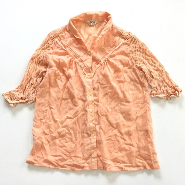 昭和レトロ 国内古着 narcissus ナルシス 半袖ブラウス 送料無料 レディース 13/オレンジ系 無地 カジュアル 鍵編み...
