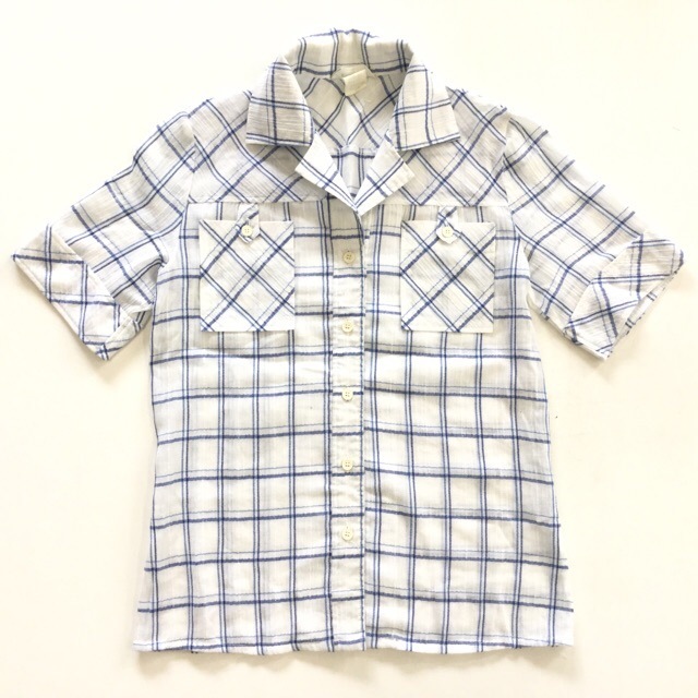 SUN KING 昭和レトロ 半袖ブラウス チェックブラウス 送料無料 レディース S-M/白x水色 格子柄 カジュアル オープン...