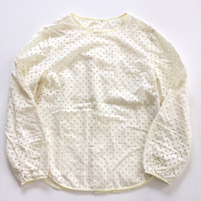 昭和レトロ 国内古着 長袖カットソー レースブラウス レディース M-L/クリーム 総レース 後ろ開き カジュアル フォーマル モ...