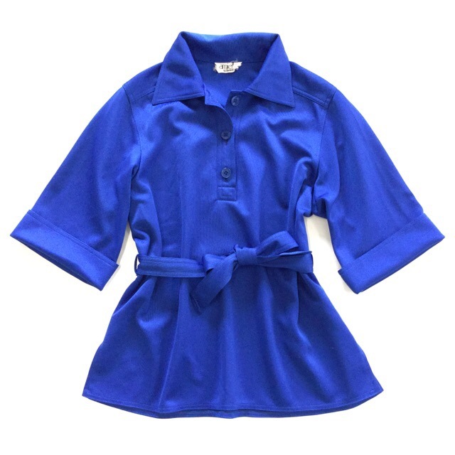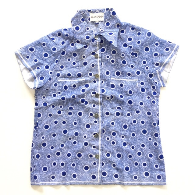 昭和レトロ 国内古着 半袖ブラウス ポリシャツ レディース 11/青・ブルー 総柄 水玉 ドッド カジュアル モダン アンティーク...