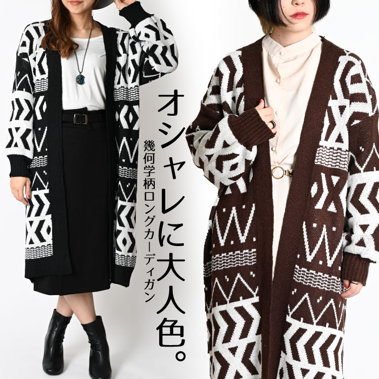 【期間限定10%OFF】【期間限定80%OFF】オシャレに大人色。幾何学柄ロングカーディガン ロングカーディガン レディース 秋 ...