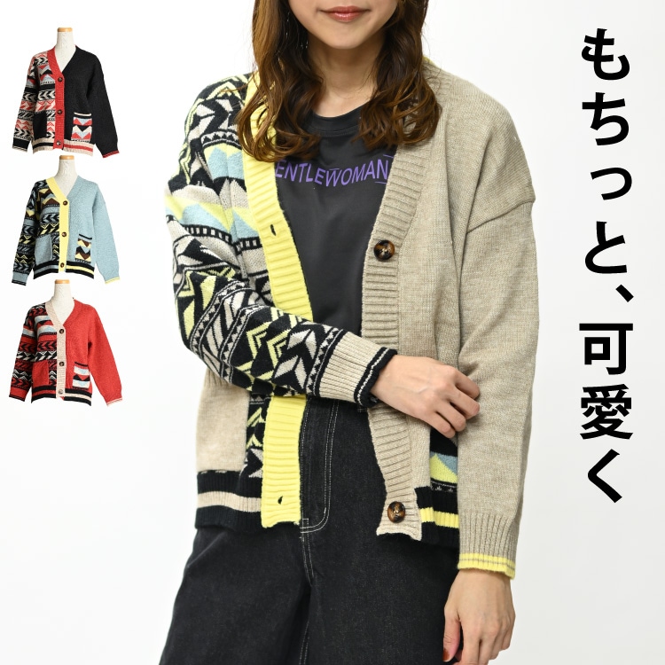 もちっと可愛く。幾何学柄ニットカーディガン