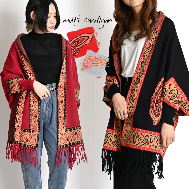 雰囲気を纏う。ペイズリー柄ショールコーディガン