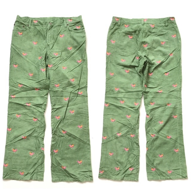 J.CREW ジェイクルー コーデュロイパンツ アメリカ直輸入 ニワトリ刺繍 送料無料 レディース W88/薄抹茶色 鳥 コーズ ...