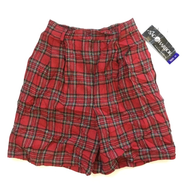 SAG HARBOR デッドストック アメリカ直輸入 ウールショーツ 送料無料 レディース 10/赤・タータンチェック柄 2タック...