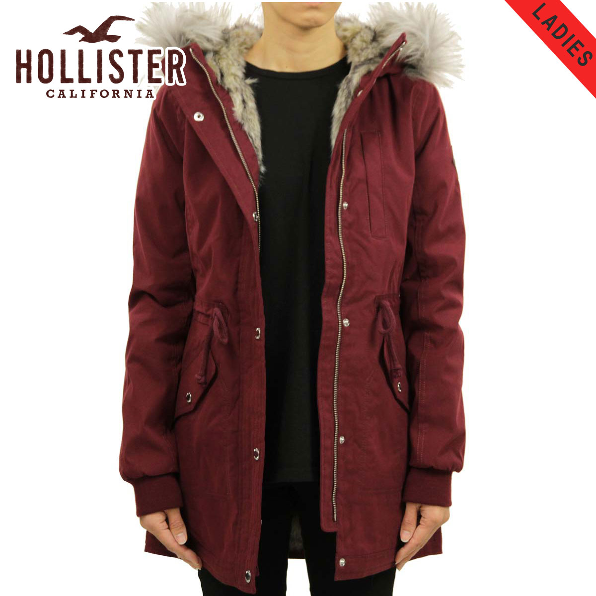 ホリスター アウター レディース 正規品 HOLLISTER ジャケット フードロングコート Stretch Faux-Fur-...