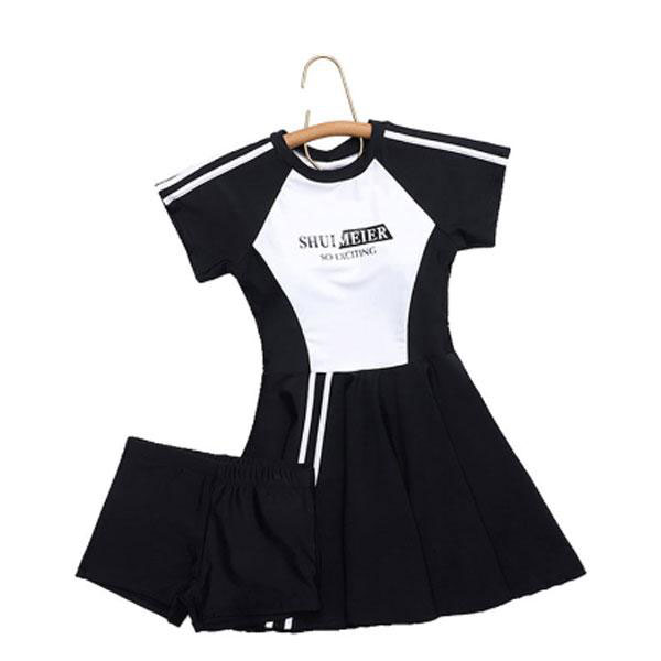 レディース カジュアル ライン入り ワンピース 水泳パンツ 2点セット 水着 スイムウェア 伸縮性 体型カバー フィットネス マリ...