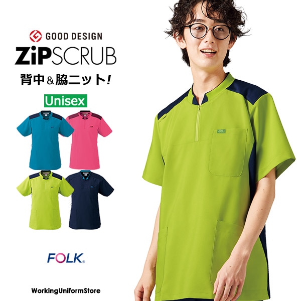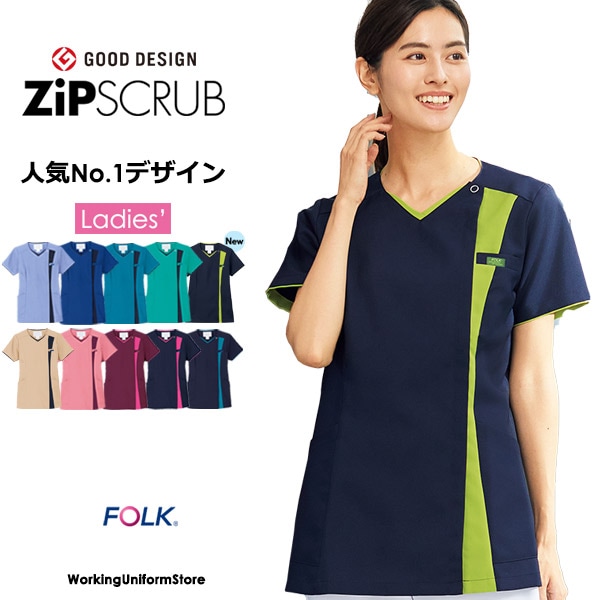 医療ナース服 レディスジップスクラブ白衣 7023SC イリアスマスト フォークFOLK
