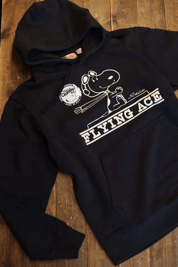FLAG STAFF フラッグスタッフ×Snoopy スヌーピー 494052 裏毛パーカー 刺繍 ブラック