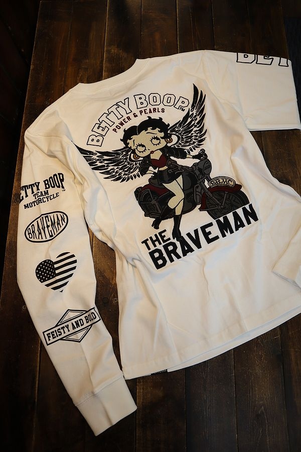 The BRAVE-MAN×BETTY BOOP ベティ長袖Tシャツ BBB-2101 天竺ロンTee 刺繍 オフホワイト