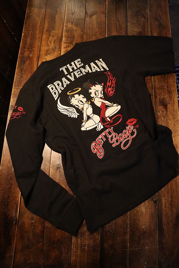 The BRAVE-MAN×BETTY BOOP ベティ長袖Tシャツ BBB-2201 天竺ロンTee 刺繍 モノグラム