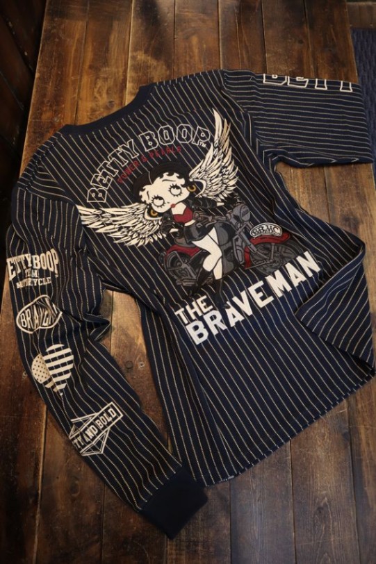 The BRAVE-MAN×BETTY BOOP ベティ長袖Tシャツ BBB-2231 天竺ロンTee 刺繍 ウォバッシュ