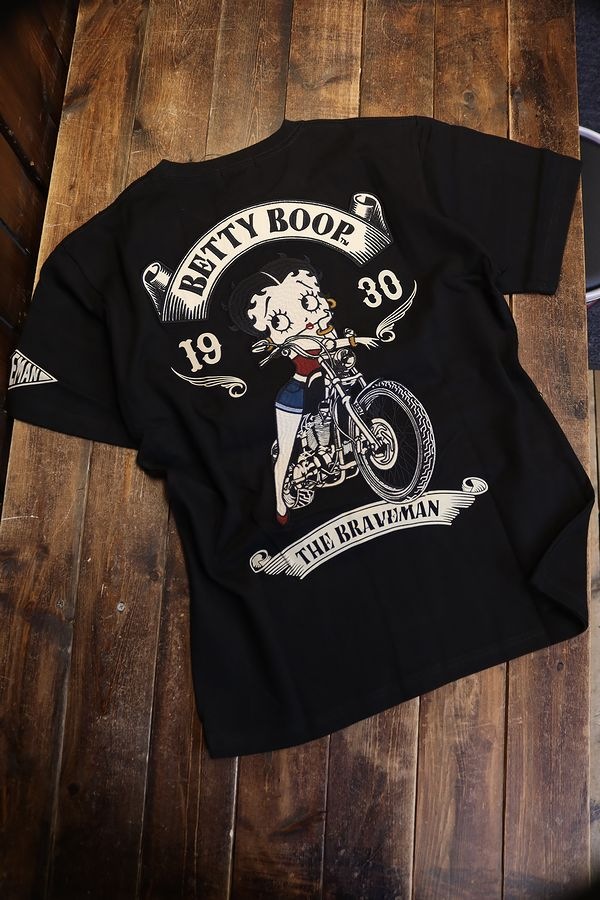 The BRAVE-MAN×BETTY BOOP BBB-2338 天竺半袖Tシャツ 刺繍 バイク ブラック