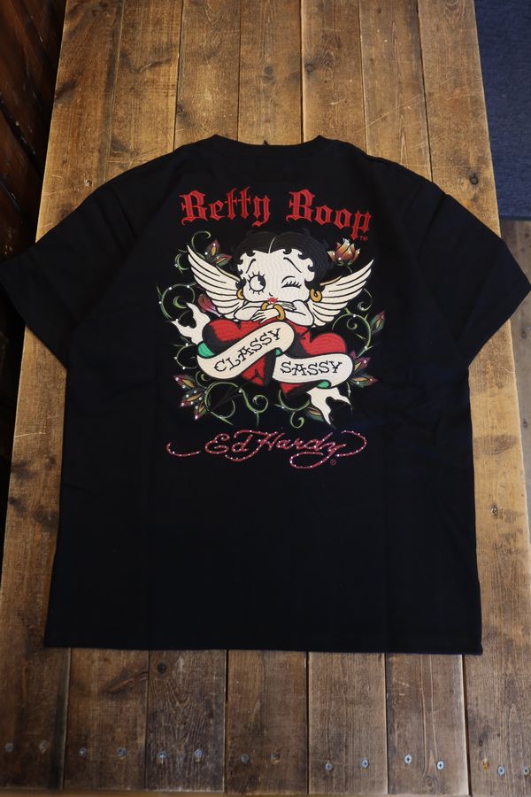 BETTY BOOP×ED HARDY BED-2601 天竺Tee ベティ×エドハーディー 刺繍・ブリント・ラインストーン Tシ...