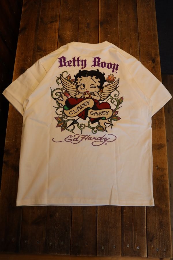 BETTY BOOP×ED HARDY BED-2504 天竺Tee ベティ×エドハーディー 刺繍Tシャツ オフホワイト
