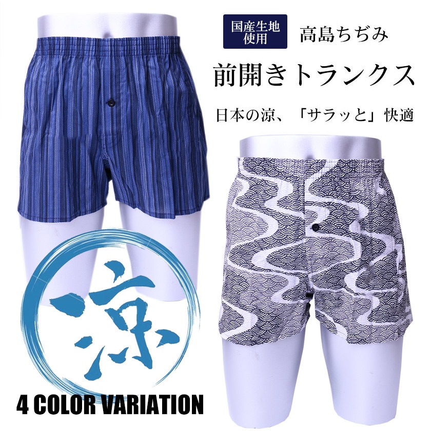 前開きトランクス 高島ちぢみ 涼しい リラックス 部屋着 前開き 前ボタン付き 粋 おしゃれ 父の日 ギフト 綿100% 吸汗速乾...