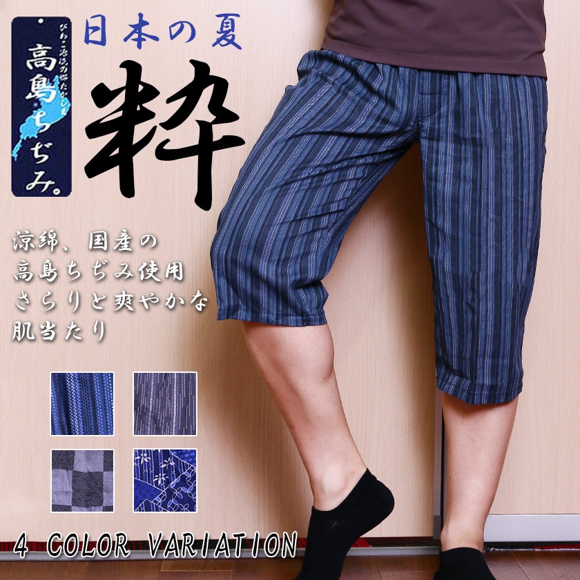 日本製の高島縮使用 メンズ ステテコ 涼しい リラックス たかしまちぢみ 部屋着 前開き 前ボタン付き 粋 おしゃれ 和柄 父の...