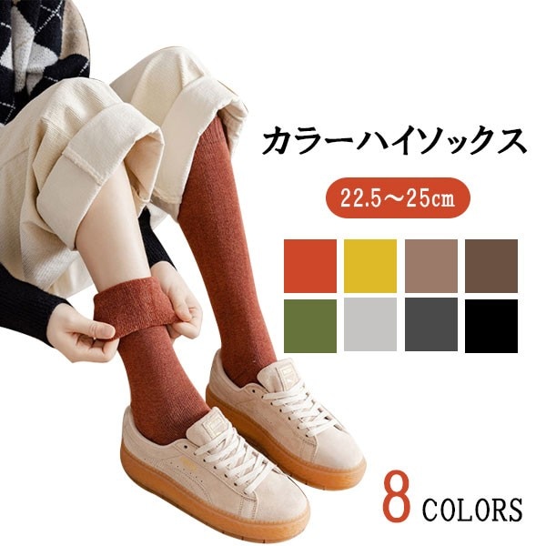【即納】レディース カラー ハイソックス 靴下 ソックス 綿 コットン 柔らかな 厚手 裏パイル あったか 着圧 弾性 防寒 おし...