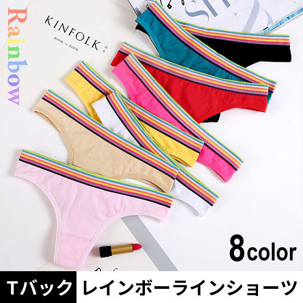 【即納】レディース インナー Tバック ショーツ ローライズ 通気性 履き心地 快適 ウエスト レインボーライン 綿 コットン タ...