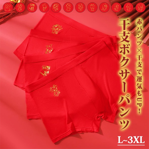 【即納】開運 干支 ボクサーパンツ メンズ 抗菌クロッチ コットン 柔らかい 薄手 伸縮性 快適 清潔 赤パンツ 運気アップ 縁起...