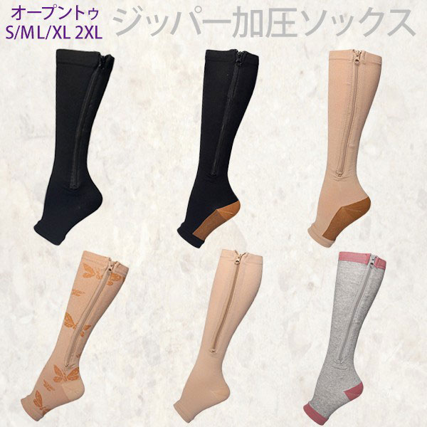 【即納】 レディース ジッパー加圧ソックス オープントゥ むくみ 解消 ふくらはぎ 引き締め 履きやすさ 快適 送料無料