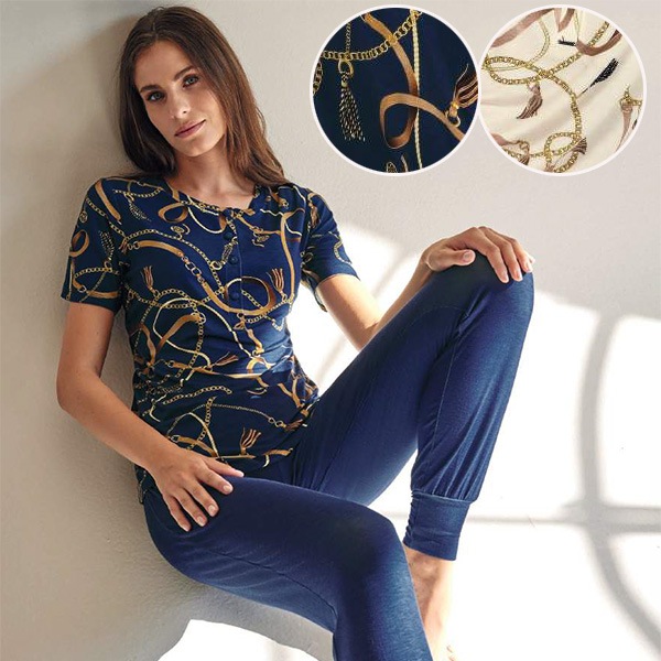 イタリア インポート ブランド パジャマ LORMAR BELT 1782 ベルト柄フロントボタン半袖・ロングパンツパジャマ 2色