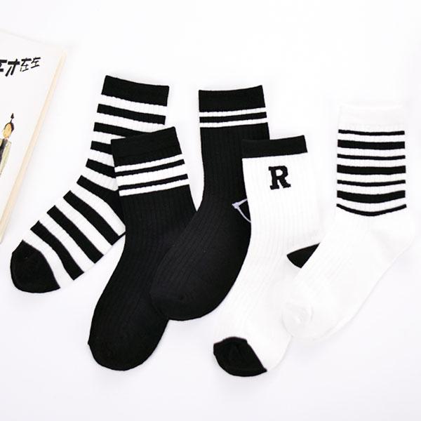 レディース モノトーン ソックス 5足1セット ミドル丈 ボーダー ロゴ コットン ポリエステル 伸縮性 通気性 オールシーズン ...