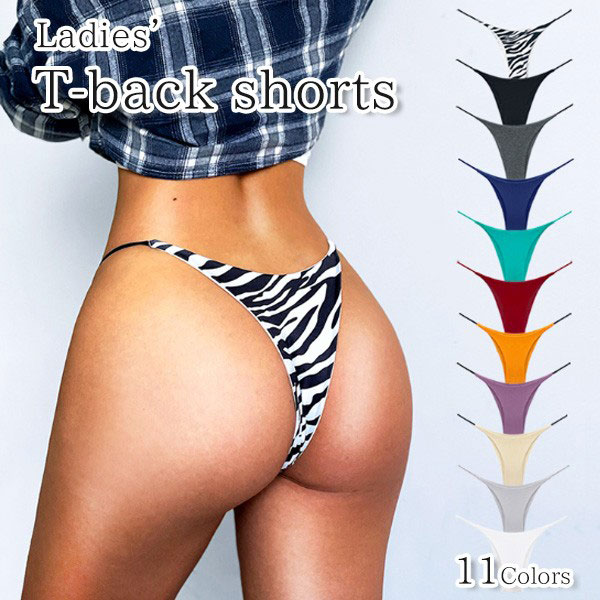 【即納】レディース インナー ショーツ ローライズ Tバック スタイル ヒップ タンガ シンプル カラー ゼブラ 柄 伸縮性 通気...