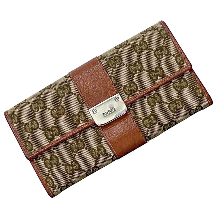 グッチ 二つ折り 長財布 ec-23503 ベージュ ブラウン GGキャンバス 233028 財布 キャンバス レザー 中古 04...