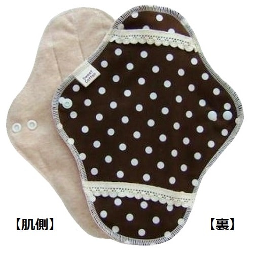 オーガニックコットン 布ナプキン Dシリーズ ナイト用:ブラウン水玉