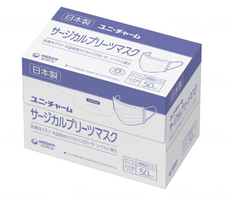 【白】【小さめ】ユニ・チャ-ム サ-ジカルプリ-ツマスク小さめ50枚入り4層構造マスク 医療用マスク