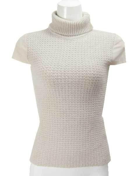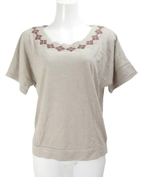コンパーニュイタリアーナ ベージュ切替半袖ニット 500円