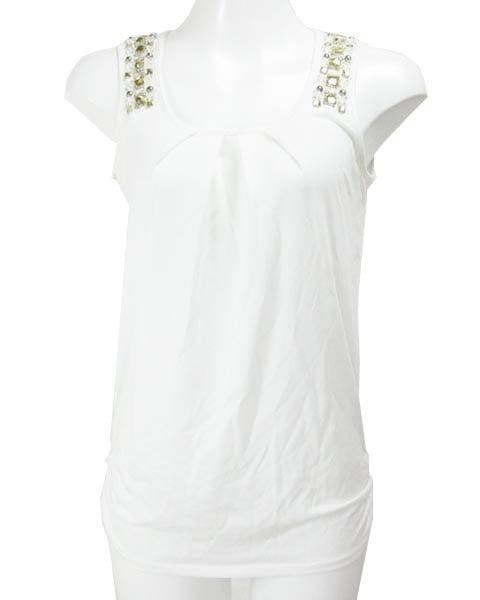 QUEENS COURT クイーンズコート 白ビジュー付タンクトップ 500円